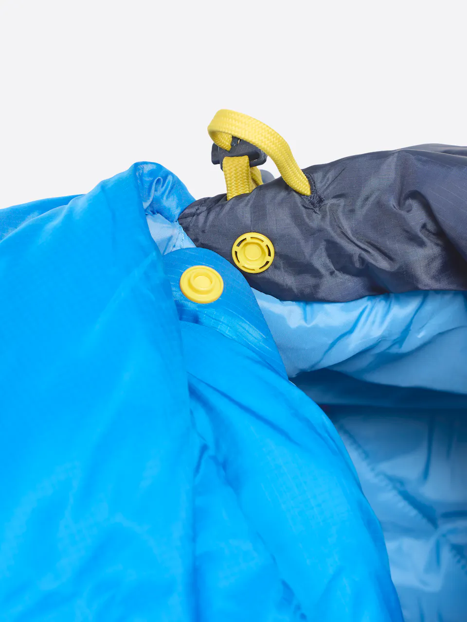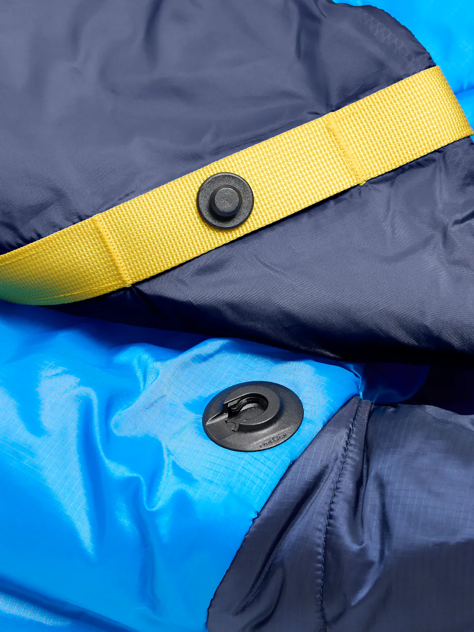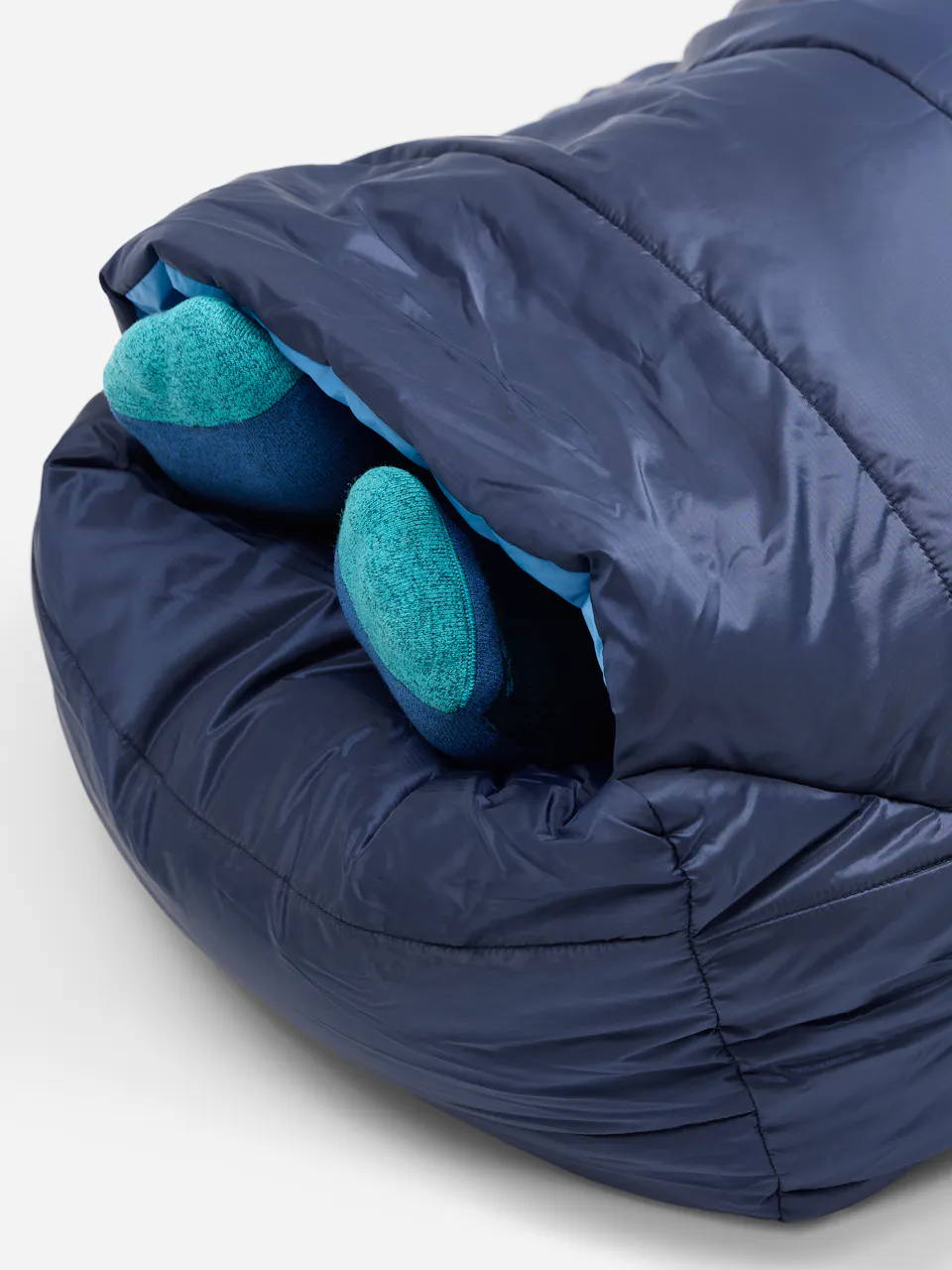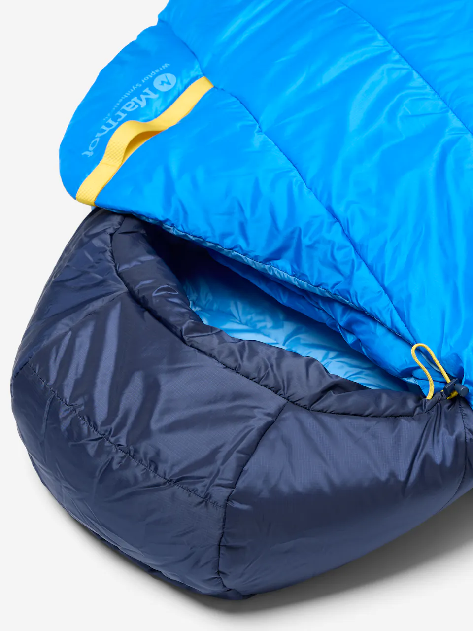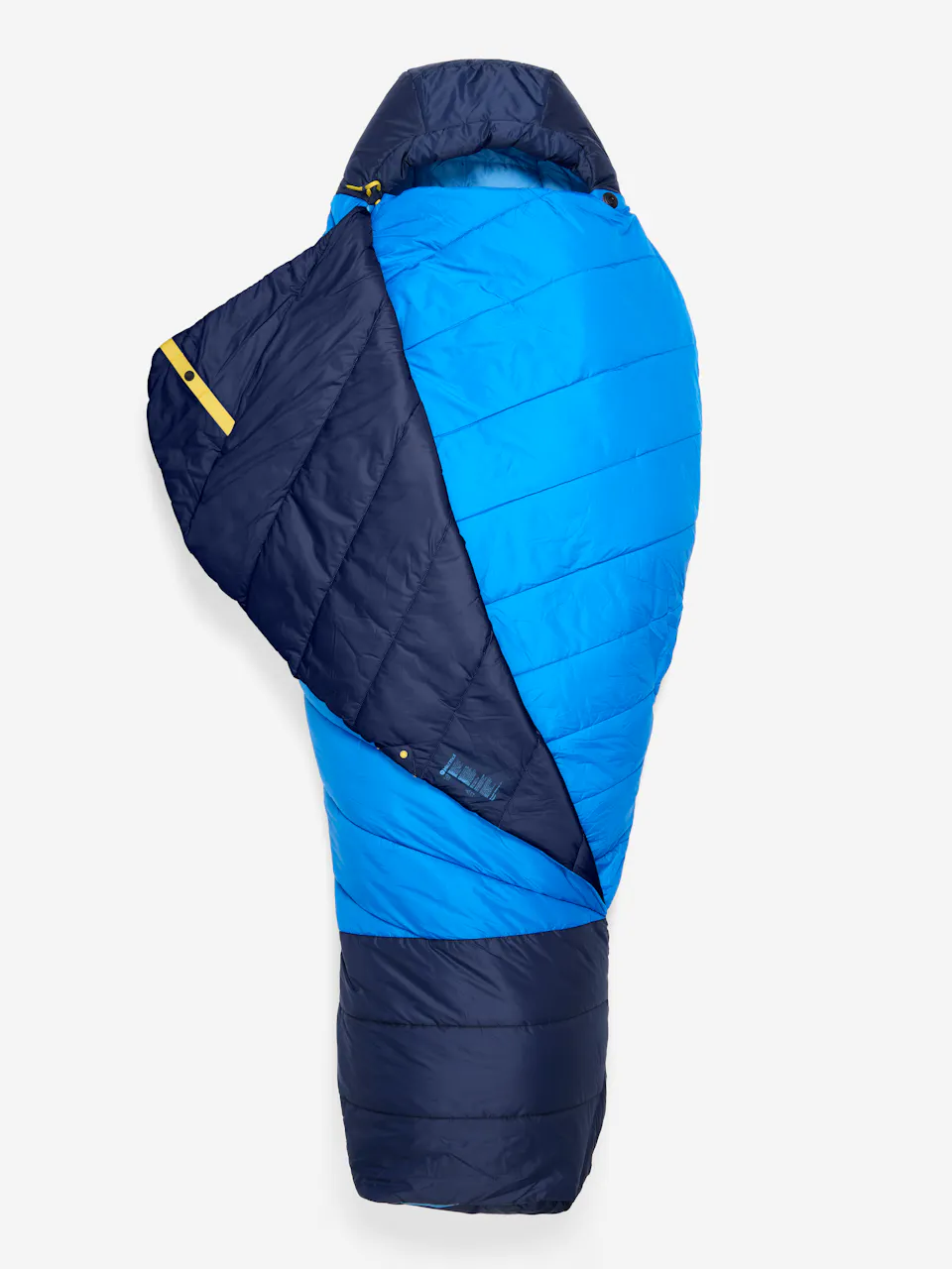 Zipper-free, warm-when-wet mummy bag for comfort in any sleeping position